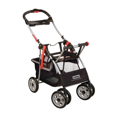 Jeep Universal Car Seat Carrier Stroller secure fit tray helps to stablize infant car seats. Fits 6 most popular brands of infant car seats from Peg Perego, Cosco, Safety 1st, Evenflo, Graco, and Maxi Cosi (car seat not included). 8 x 8 all-terrain shock absorbing front swivel wheels. The Jeep Universal Car Seat Carrier Stroller accepts the car seats below: Cosco Designer 22 Series Cosco First Ride DX Evenflo Discovery Graco Safe Seat Graco Snug Ride Series Maxi-Cosi Mico Peg Pérego Primo Viaggio SIP Safety 1st Designer 22 Safety 1st Starter